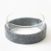 温かいお茶をたのしむための、Ocha SURU? Glass Kyu-suの急須パーツ専用のフェルトスリーブです。 様々なシーンに合わせやすいグレーカラーの展開。やわらかなフェルトが優しくグラス急須を包みます。
