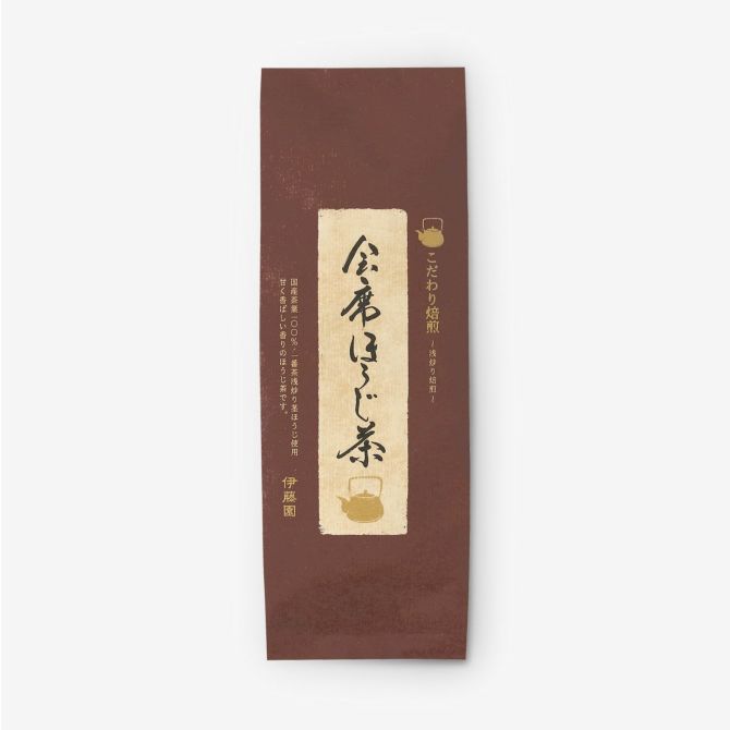 国産茶葉100%・一番茶浅炒り茎ほうじ使用。 一番茶の渋みの少ない茎の部分だけを使って、軽く煎ってさっぱりと仕上げました。甘く軽やかな味わいです。