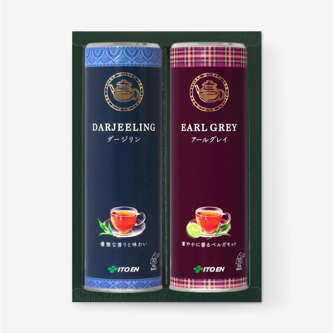 ダージリンとアールグレイの、紅茶ティーバッグセットです。茶葉がジャンピングしやすく、よく抽出できるナイロンメッシュの三角ティーバッグ。スタイリッシュな缶に詰め合わせました。