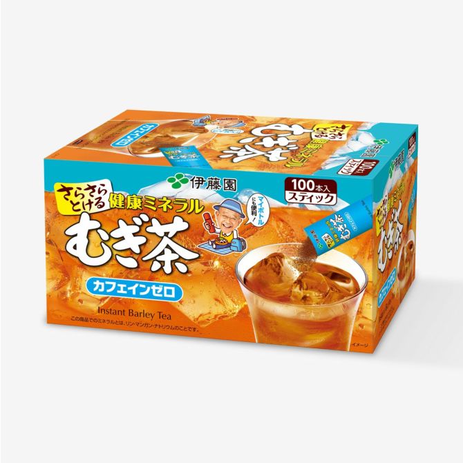 冷水でもお湯でもさらさらすぐ溶ける、香味ゆたかなミネラル入りインスタントむぎ茶。 乳幼児から高齢者まで安心して飲めるノンカフェイン。※乳児用規格適用食品と同等の管理をしています。 手軽で後片付けも簡単です。持ち運びに便利なスティックタイプ。100本入りの大容量なので、おひとりでもご家族でもご利用いただけます。