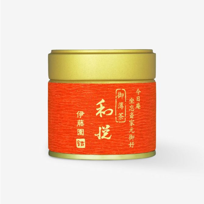 伊藤園が厳選したお点前用の抹茶。裏千家今日庵坐忘斎家元御好の御薄茶です。厳選した茶園で新芽を丁寧に手摘みしました。うまみが濃厚で香り立ちがよく、すっきりした味わいです。