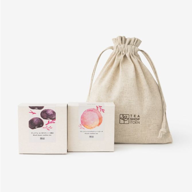 オリジナルラッピング巾着に包まれたルイボスティー2種セット。ギフトにおすすめです。