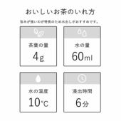 小さめの茶碗に4gの茶葉を入れ、水を60mlを注ぎ入れます。およそ6分たったら飲み頃。濃厚な茶の旨み、甘みが口から鼻に抜け、ひとときの幸せに包まれます。
