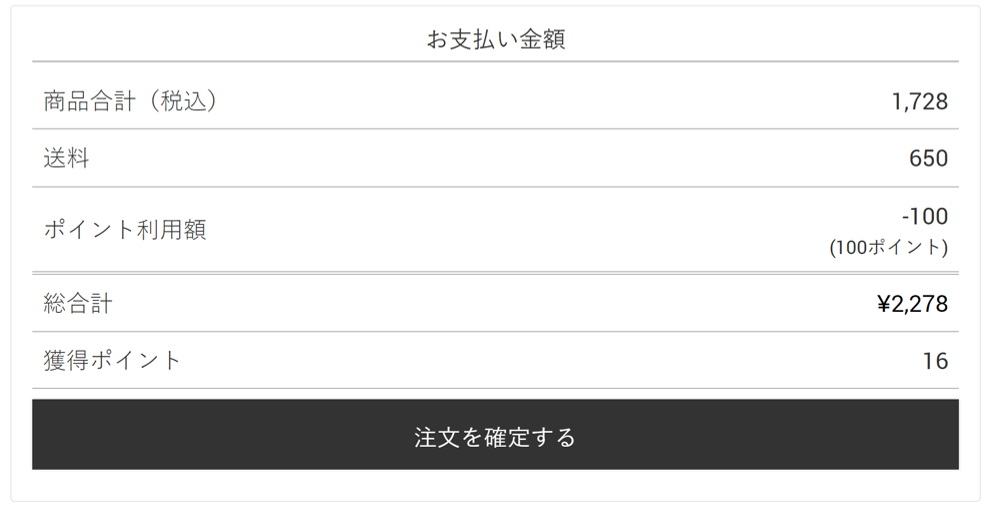 「ポイント利用額」欄にて、お支払いに利用するポイントが反映されています。